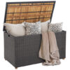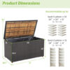 Specifications: Color of PE rattan Mix brown Material PE rattan acacia wood metal polyester Overall dimension 51″ x 28.5″ x 28″ (L x W x H) Inner dimension 49″ x 26″ x 24.5″ (L x W x H) Net weight 44 lbs Capacity 134 Gallon/507L Weight capacity of acacia wood board 165 lbs Weight capacity of inner space 66 lbs