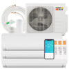 Specifications: Color of Indoor Unit: White Color of Outdoor Unit: White Material: Metal Aluminum Plastic Indoor Unit Size 9k: 31.9″ x 8″x 11.5″(L x W x H) Indoor Unit Size 12k: 31.9″ x 8″x 11.5″(L x W x H) Indoor Unit Size 18k: 39.8″ x 8.7″x 12.4″(L x W x H) Indoor Unit Size 24k: 46.9″ x 10.2″x 14.2″(L x W x H) Outdoor Unit Size: 39.6″ x 15.7″x 35.8″(L x W x H) Multi-Zone Combination: 3 Voltage:208-230V~60Hz/1PH Coverage Area: 1750 sq. ft Temperature Setting Range: 60?~90? Refrigerant: R410A SEER2: 19 Indoor Noise Level:?30 dB Outdoor Unit Net Weight: 166.4 lbs Indoor Unit Net Weight 9K: 20.9 lbs Indoor Unit Net Weight 12K: 20.9 lbs Indoor Unit Net Weight 18K: 27.6 lbs Indoor Unit Net Weight 24K: 36.4 lbs Package Includes: 1 x Outdoor Unit 3 x Indoor Unit 3 x Communication Wire 3 x Copper Connection Pipe 3 x Drain Hose 3 x Remote Control 3 x Wall Sleeve 3 x Wall Cover 3 x Screw Kit 6 x Putty 6 x Tape 4 x Rubber Pad