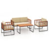 4 Pieces Acacia Wood Outdoor Sofa Set for Balcony Porch Backyard Poolside