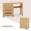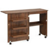 Folding Sewing Table with Storage Shelf and 5 Lockable Wheels-Natural – Color: Natural