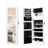 Specifications: Material: MDF board + glass mirror Color: Black/White/Brown Net weight: About 21 lbs Overall dimension: 14.5″ x 3.3″ x 53.5″ (L x W x H) Mirror size: 10.5″ x 43.5″ (L x W) The number of LED lights: 15 Power supply: 3 AAA (not included) Package include: 1 x Jewelry cabinet 2 x Keys