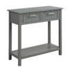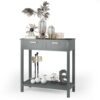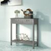 Specifications: Color: Black/Gray/White Material: MDF Rubber Wood Overall Dimensions: 31.5″ x 14″ x 32″ (L x W x H) Bottom Shelf Dimensions: 27.5″ x 12″ x 19″ (L x W x H) Clearance Between Bottom Shelf and Ground: 4″ Interior Dimensions of Drawer: 11″x 10″ x 4″ (L x W x H) Front Panel of Drawer: 12″x 4.5″ (L x W) Weight Capacity of Tabletop: 110 lbs Weight Capacity of Bottom Shelf: 44 lbs Net Weight: 25 lbs