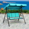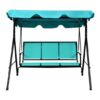 Outdoor Patio 3 Person Porch Swing Bench Chair with Canopy-Blue – Color: Blue
