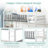 Specifications: Color Gray/White Material Pine Wood Plywood MDF Overall Dimensions 77.5″ x 47″ x 79″ Height Between Beds 33.5″ Height of Guardrails 10″ Dimensions of Ladder 15″ x 41″ Recommended Mattress Thickness of Upper Bed 6″ Recommended Mattress Thickness of Bottom Bed 8″ Net Weight 109 lbs Weight Capacity of Upper Bed 265 lbs Weight Capacity of Bottom Bed 400 lbs